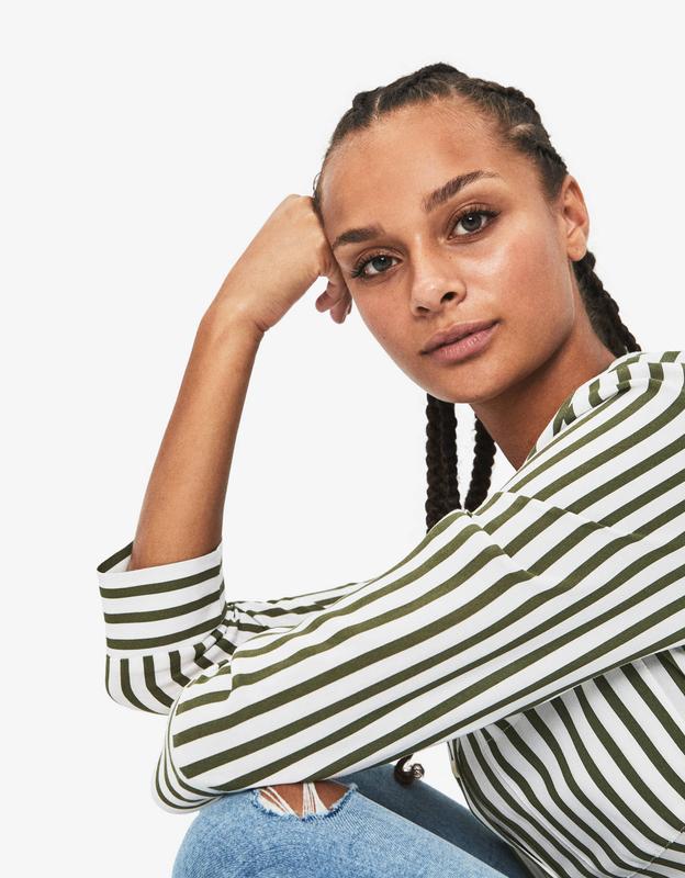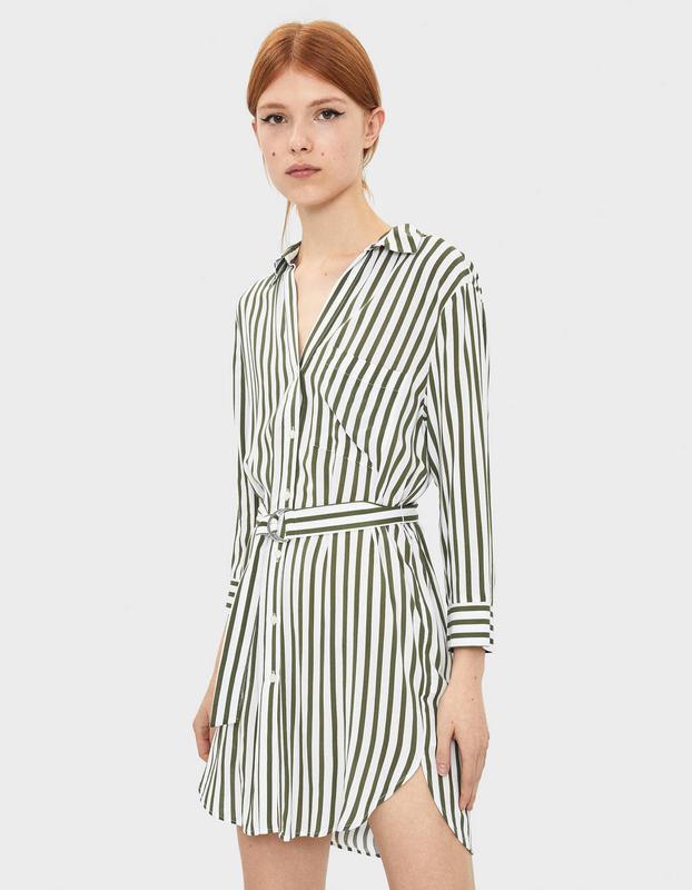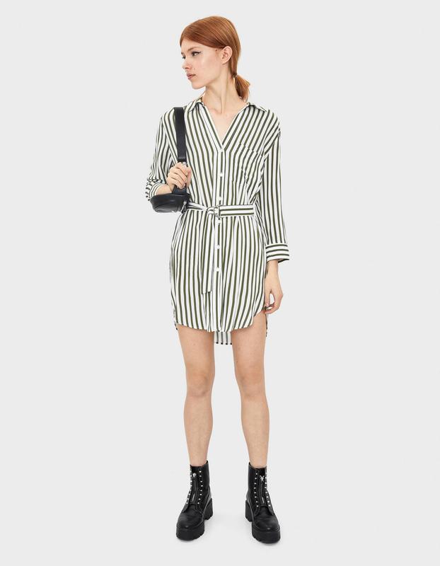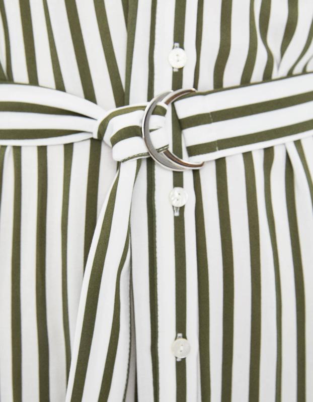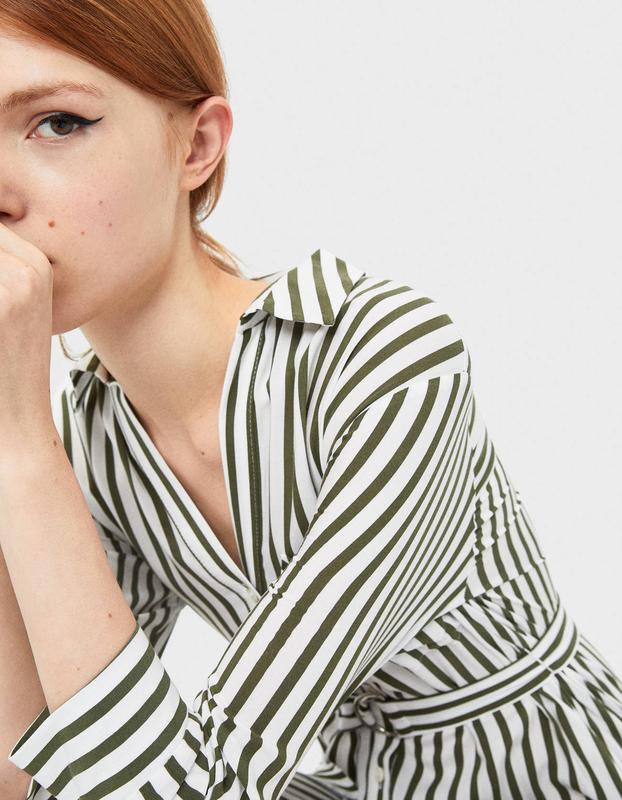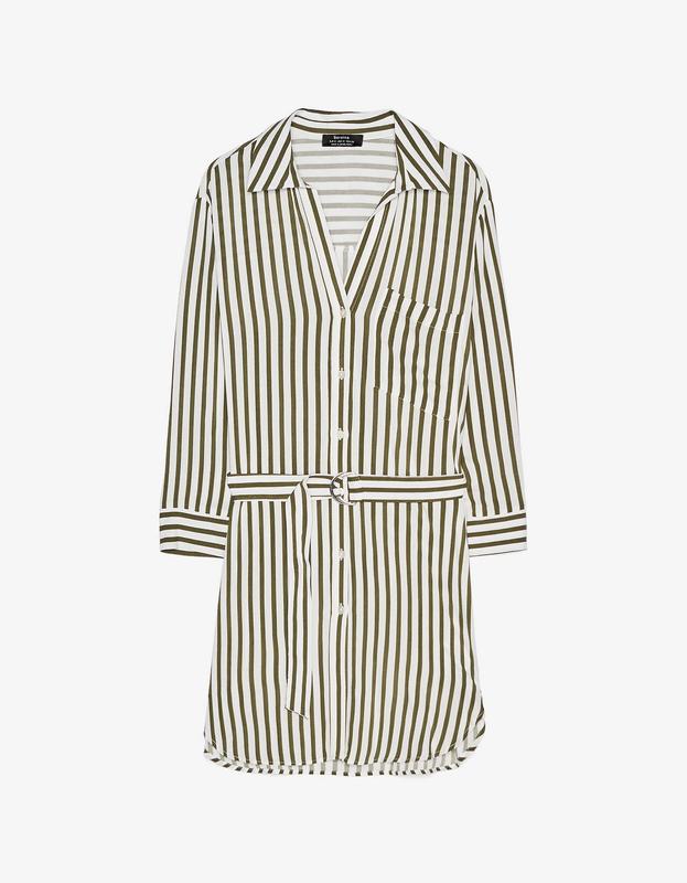 Длинное платье - рубашка с поясом и с длинным рукавом. В полоску, темно-зелёный и белый цвет Вещь в идеальном состоянии, не носилась. Размер: М Состав: 100% вискоза