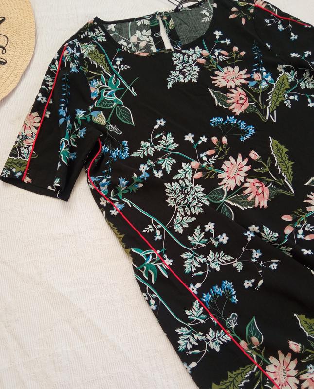Новенькое платице в красивый цветочный принт. Легенькое из вискозной ткани.Подойдёт на размер xs,sПОГ 49ПОТ 50ПОБ 51Длина по середине спинки 86