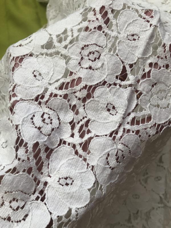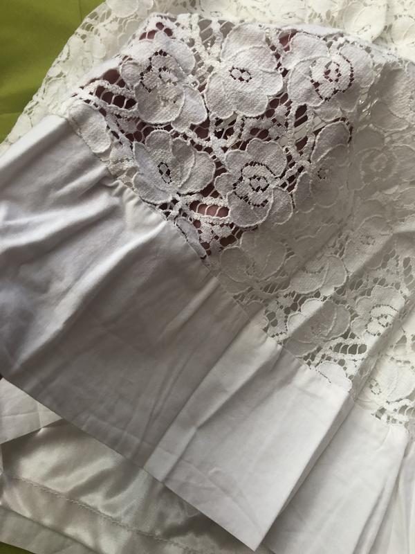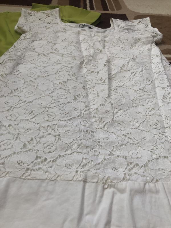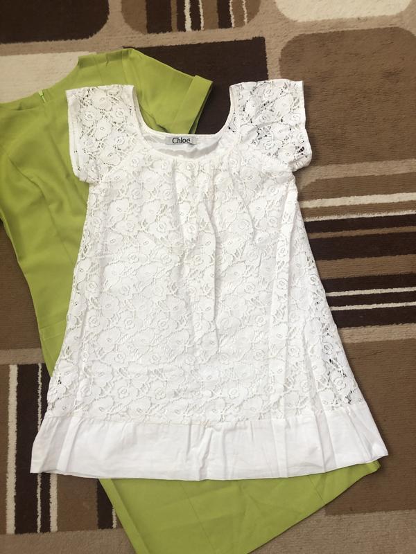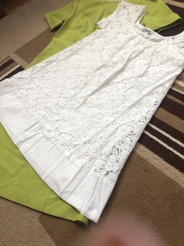 Коротенька кружевна ажурна сукня. Колір скоріше молочний, слонова кістка. Не білосніжний. Трапеція або можна під поясок. Виглядає дуже ніжно.