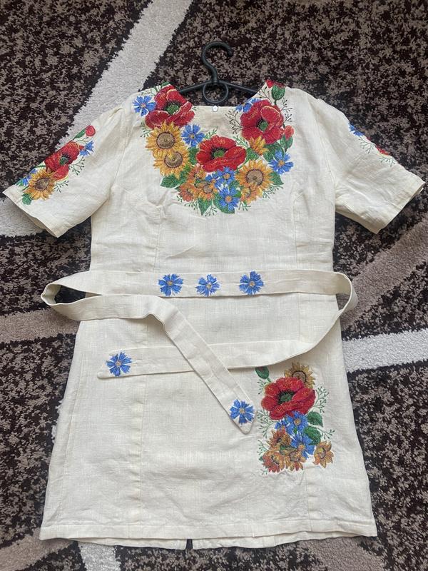 Жіноче вишите плаття лляне з поясом в розмірі S