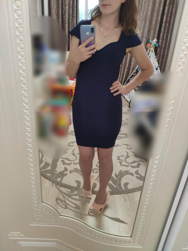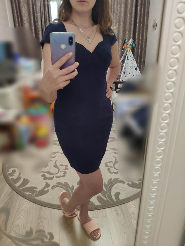 Очень элегантное платье по фигуре. Длина приличная, можно и на праздник, и в офис. очень красиво смотрится с пиджаком.