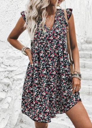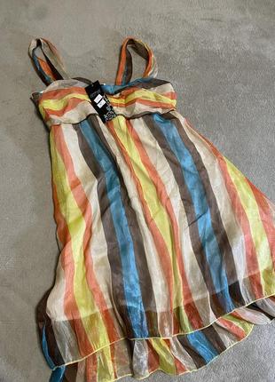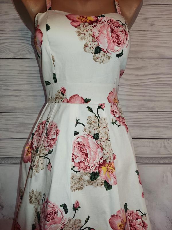 Літня жіноча сукня сарафан на бретелях. Красива квіткова забарвлення, тканина приємна до тіла, на боці є змійка, низ розляшенный. Стан ідеальний, одягнене 1 раз. На грудях є пералоновые вставки,що помітно підкреслює груди.