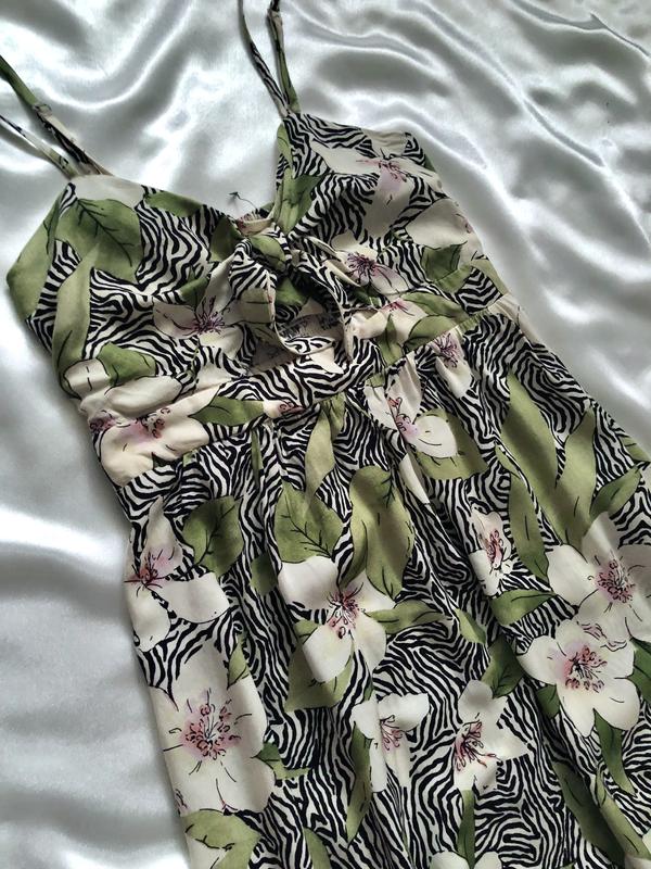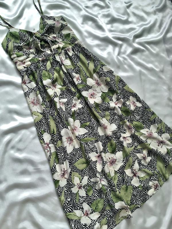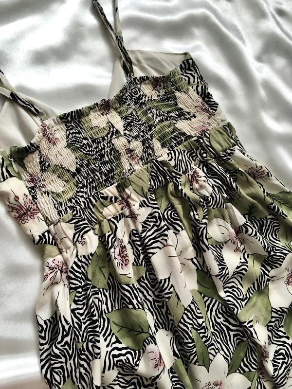 Сарафан на регулюємих бретелях зі 100% віскози ( штапель) , в ідеально-новому стані, без дефектів. Збоку блискавка.Довжина 110 см,Ног. 36 см і тягнеться,Нот. 33 см і тягнеться,Стегна вільні.