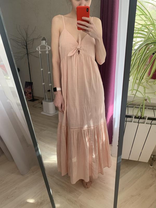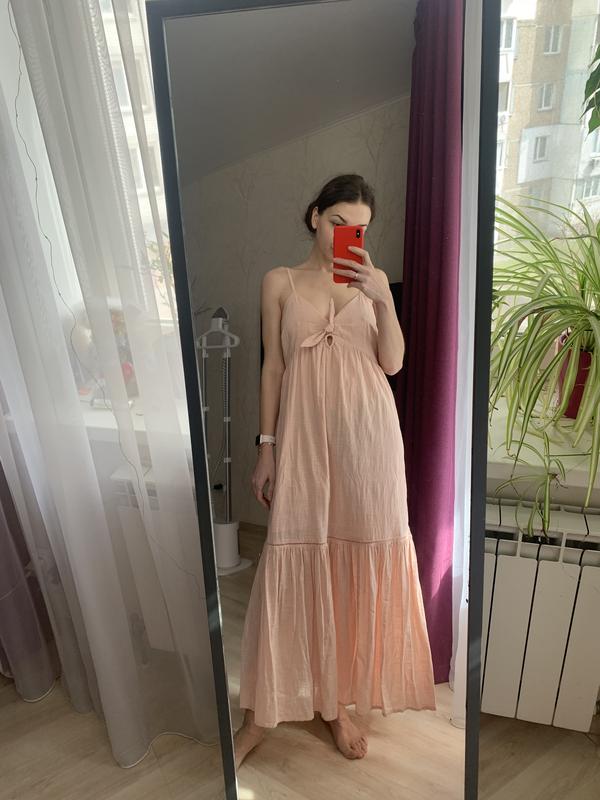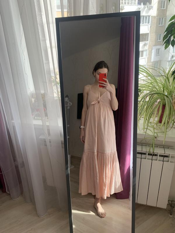 Новый, нежно персиковый сарафан, 100% коттон, в размере 12-14, это M-L. Мой рост 178 см