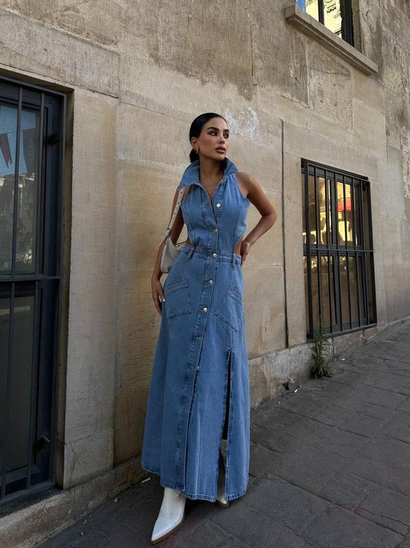 Стильные трендовые джинсовые сарафаны с разрезами
