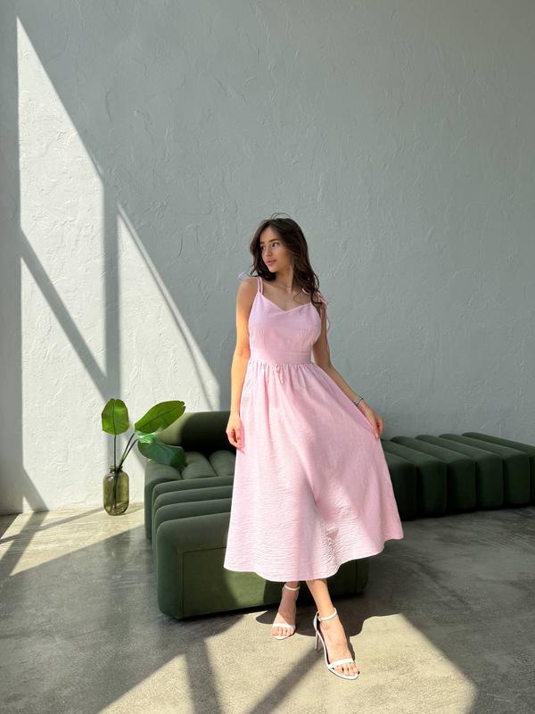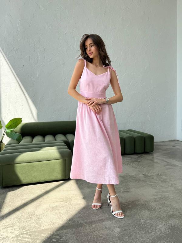 Сарафан міді льняний жіночий з відкритою спиною сукня комбінація на тонких бретельках приталена силуету рожевий