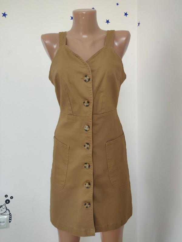 Стильный сарафан,модный в этом году,з плотной ктоновой ткани, с карманами, застежка на пуговицы, позади резинка.Идеально подчеркивает фигуру.Трендовый цвет.В нем вы будете чувствовать себя комфортно в любимую погоду.