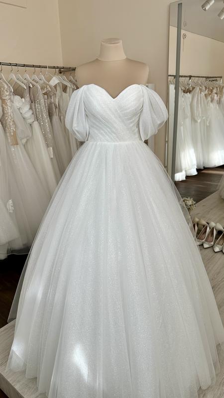 Новое свадебное платье. Размер 44-46 подходит на ОГ 88-92 см. Цвет - молочный (теплый белый с блестками). Юбка пышная с блеском корсет драпировка из блестящего фатина, на шнуровке. Очень красиво блестит! Дополнительная информация по вашему запросу. Платье можно примерять в салоне в м. Запорожье. Смотрите все мое предложение.