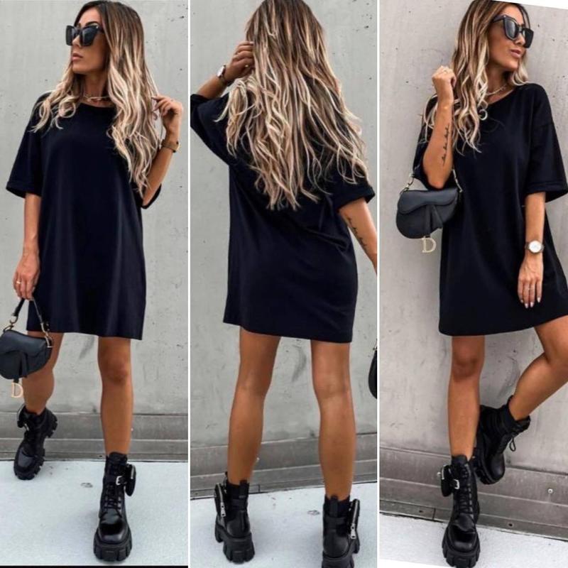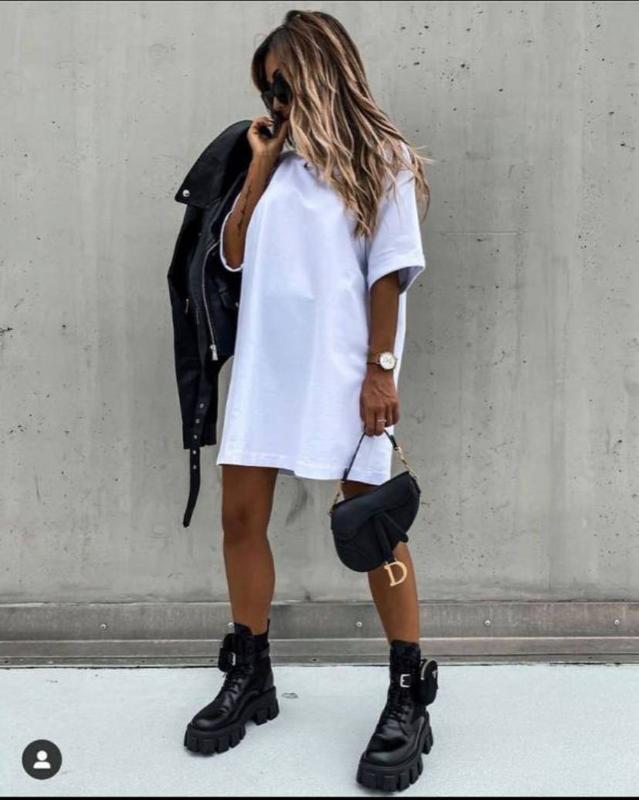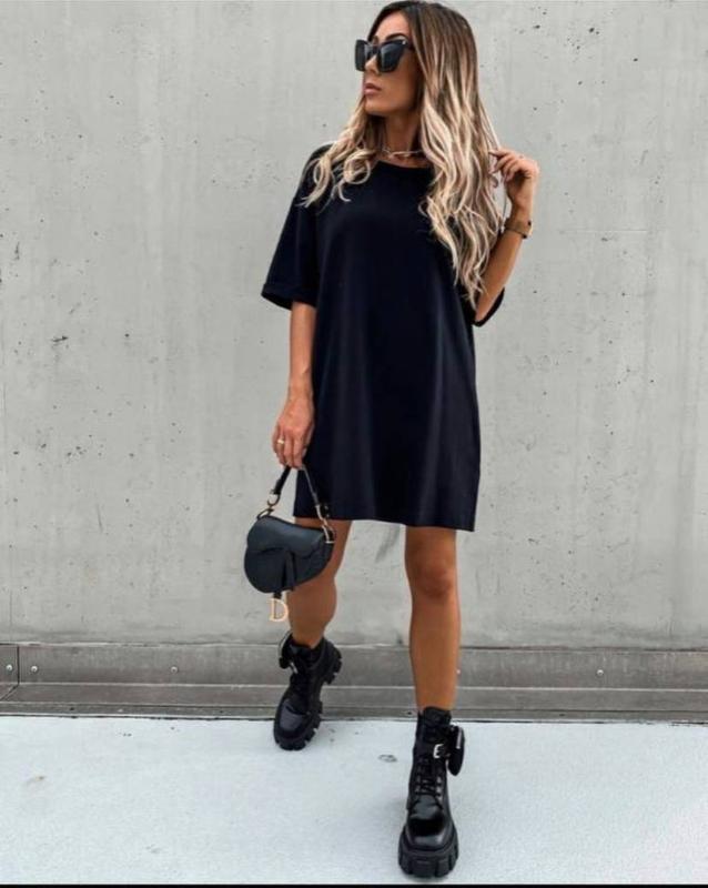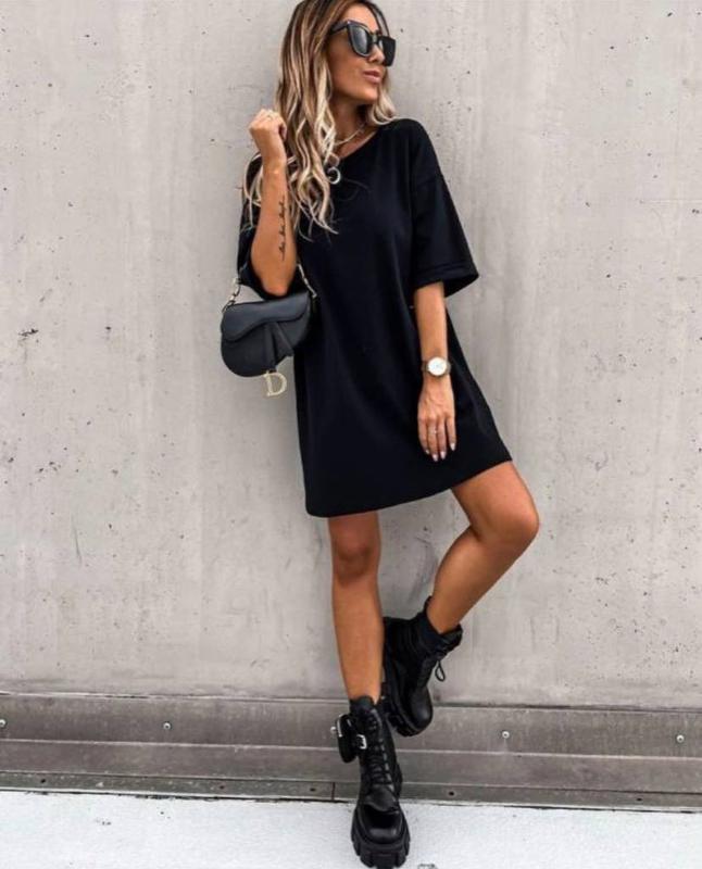 Однотонное классическое платье - футболка из летней хлопковой ткани.