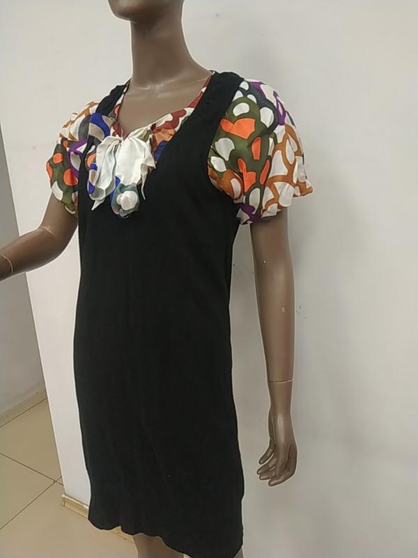 Милое платье.Рукава шелк.Чернпя майка вязаный трикотаж.