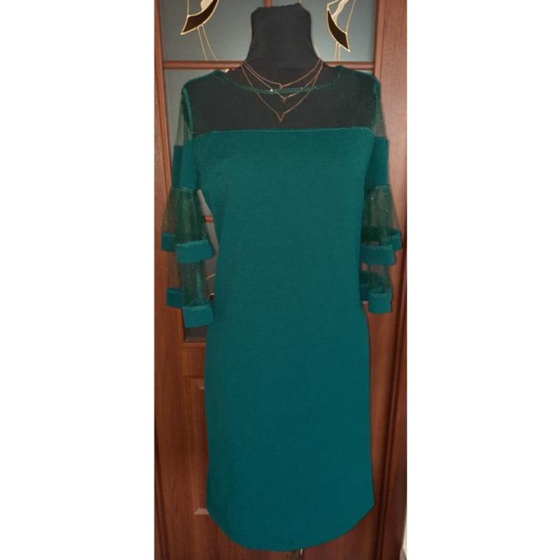 Красивое,вечернее платье цвета изумруд💚, вставки сеточка с вкраплением очень маленьких блесток, которые при вечернем освещении красиво переливаются, некава клеш, тканная плотная, очень красиво тянется и садится по фигуре, размер указан наш 46, подойдет на М из зади на молниеи, статус очень хорош(е Маленький, не заметный нанс)