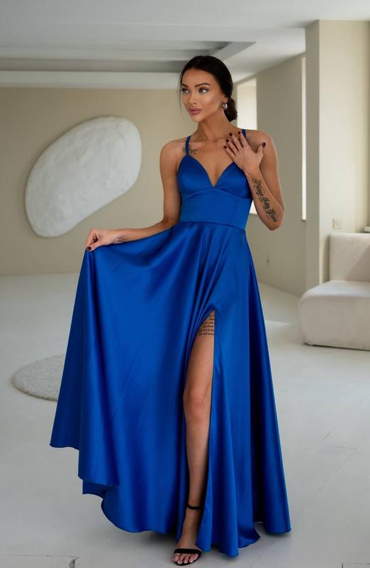 Модель с глубоким декольте и регулируемыми тонкими бретелями, лиф с паралоновыми чашками.