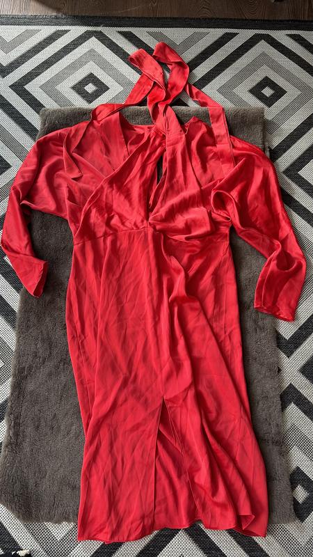 Платье длинное вечернее нарядное с разрезом красное красивое