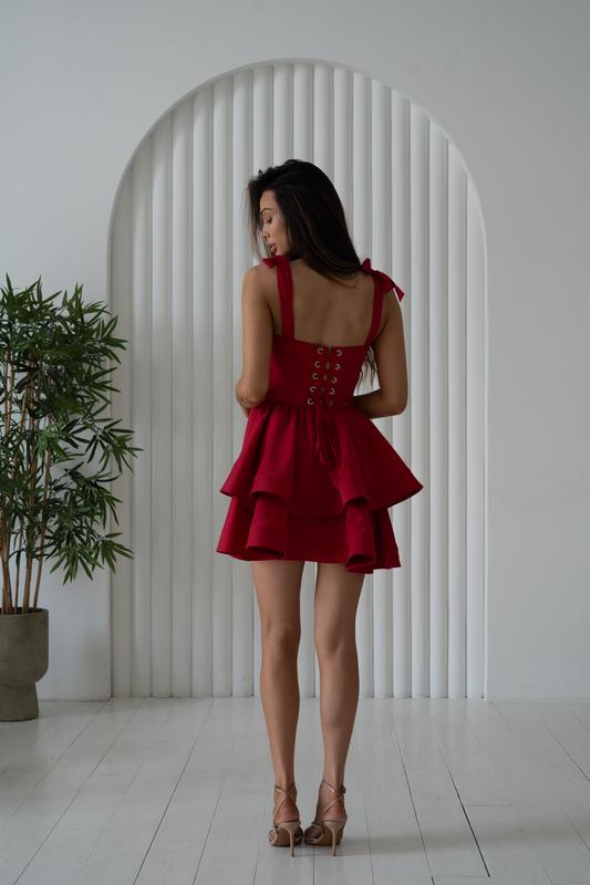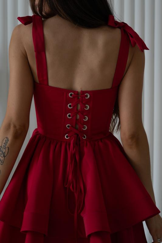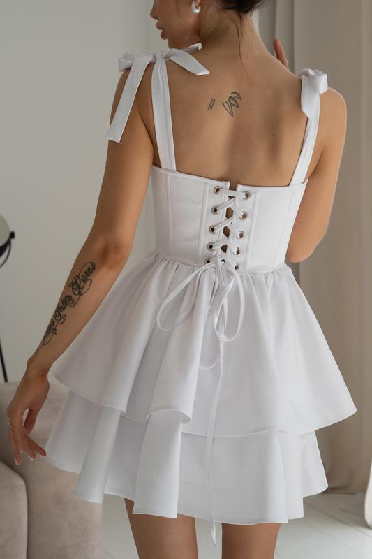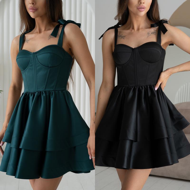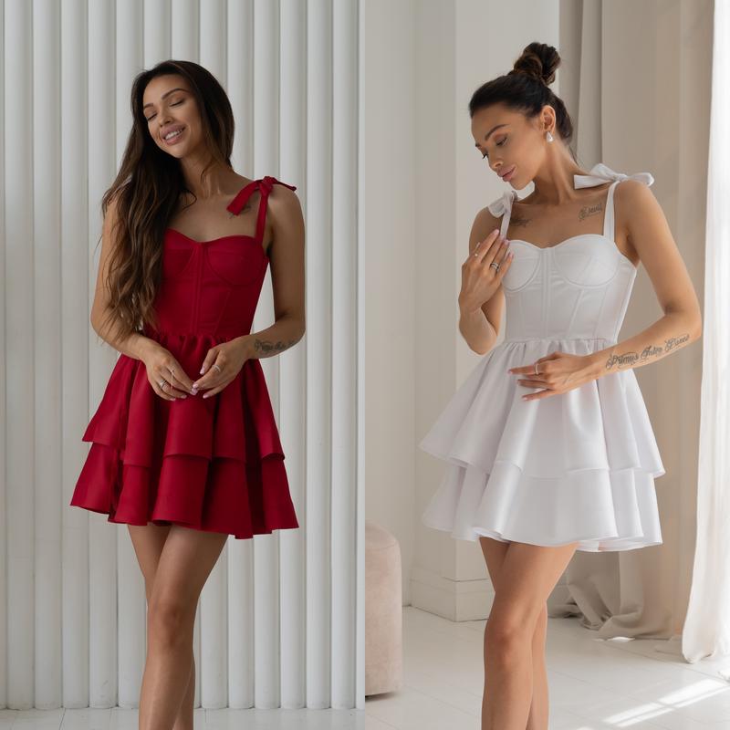 Кукольное платье с нереально пышной двойной юбкой и корсетом, который красиво подчеркивает декольте, имеет push-up чашки. Корректируй платье с помощью корсетной затяжки по спинке.❤️