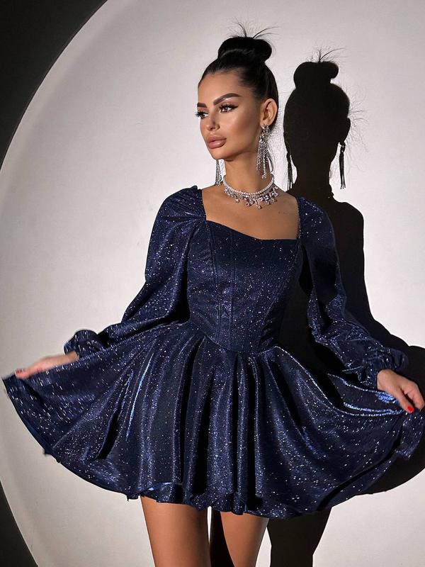 Возможен накладной платеж по предоплате 200грн. Безопасная оплата Обмен и возврат в день получения посылки Проверяйте товар на брак по отделению почты и если он есть оформляйте акт Светящееся корсетное платье с пышной двойной юбкой и объемными рукавами ▫️ткань: люрекс ▫️размер: S и М (L + 200 грн)