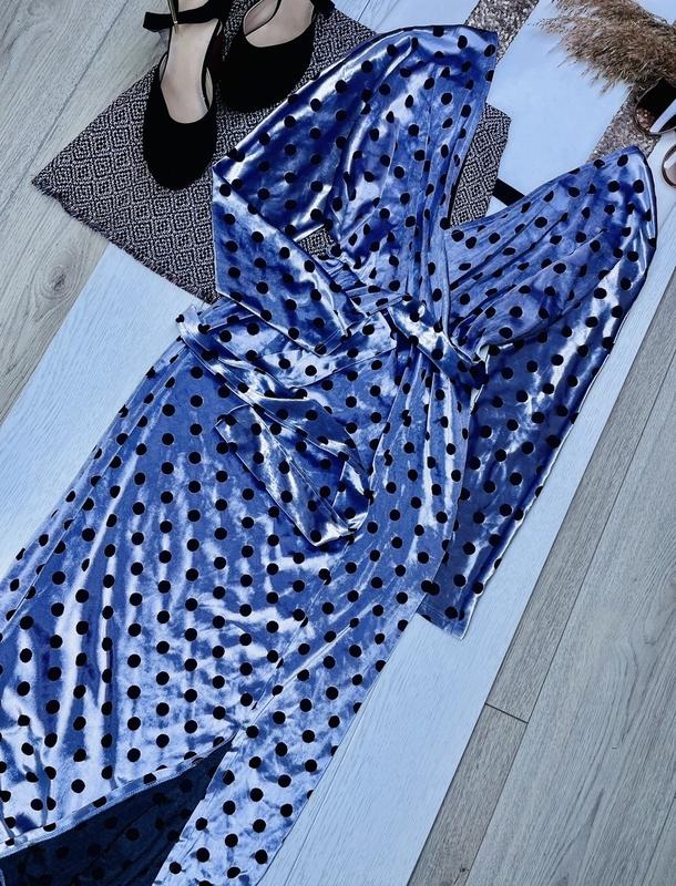 Особенности:миди платье из нежного, тонкого бархата.V-вырез.По талии пояс средней ширины.Разрез на ножке.