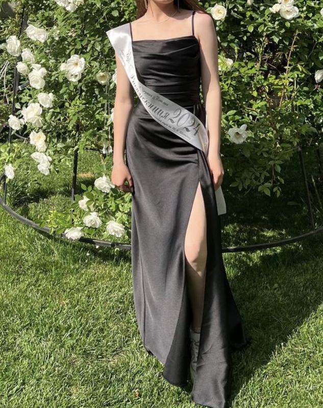 Платье,черная Размер s,рост девушки 157 Подходит и чуточку для высшего человека Ткань приятная, разрез на ноге Наделась 2 раза