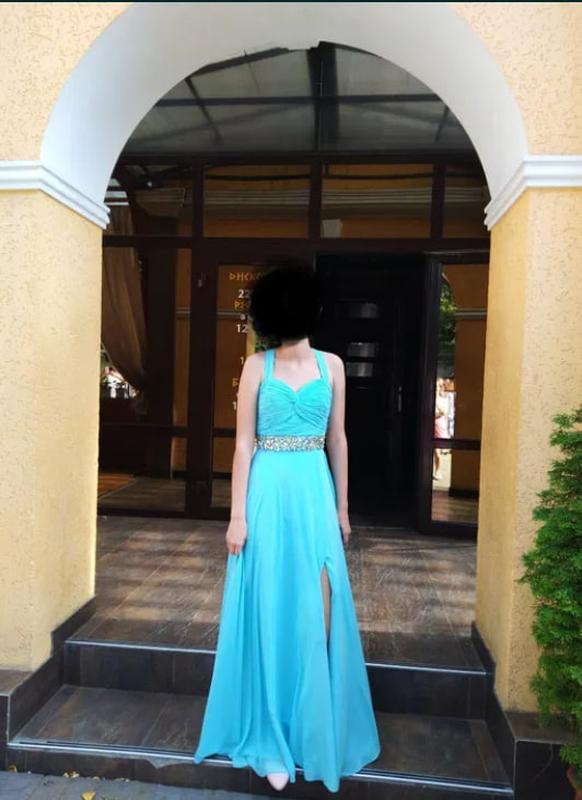 Выпускное голубое платье с красивой открытой спинкой и разрезом сбоку, шлось по заказу в Киеве. Ткань очень приятная к телу и качественная. Наделось на рост 1.7 без каблуков. При необходимости -надам замеры. В туловище-на очень худи девочку. Возможен адекватный торг