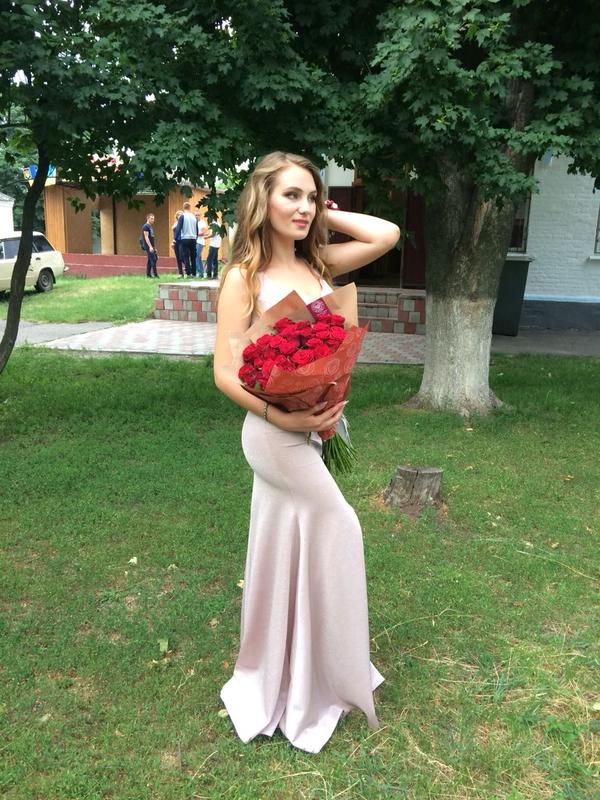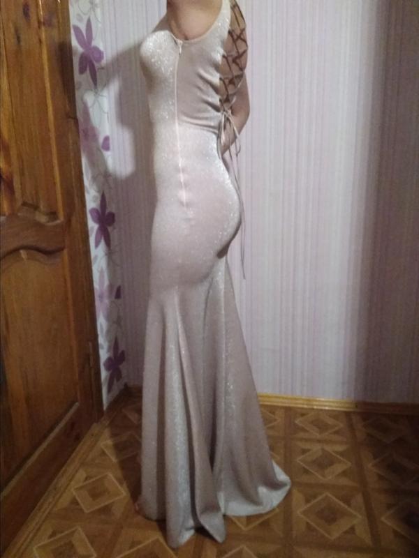 Ткань немного тянется, но не как трикотаж, а слегка для силуэта. По спинке шнуровка. БЮСТГАЛТЕР НЕПОТРЕБЕН - В ЛИФИ УДОБНЫЕ ЧАШЕКИ!!! Сзади немного длиннее, как шлейф. Сбоку молния. Платье шикарно смотрится в вечернем свете. Размер 36 евро или 44 укр. У девушки в платья по груди 91см, талия 69, бедра 95. Если ваши настройки на1-2 см меньше, то сядет идеально!