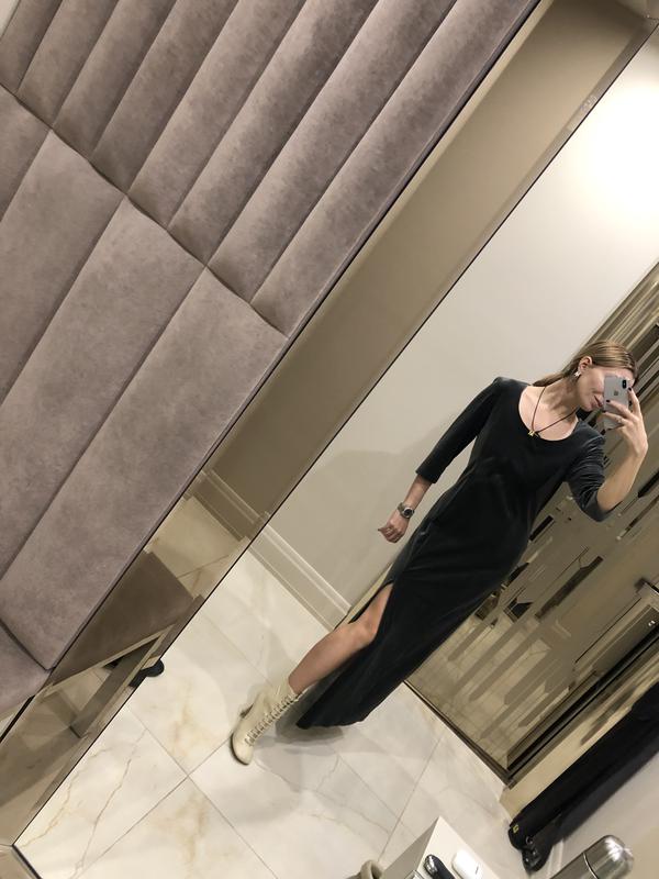 Цвет серый графит, надето на рост 1.65. Красивый разрез спереди.