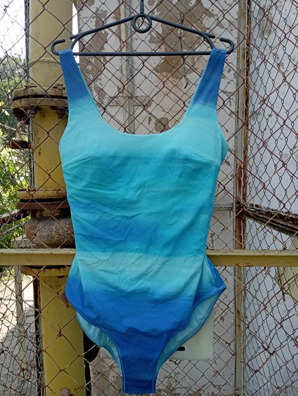Купальник на подкладке, материал тянеться. Очень красивый градиент. Имеет съемные поролоновые вставки. Длина от плеча 75, пог 44, поб 45 размеры сняты в спокойном состоянии.