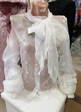 Рубашка zw collection с вышивкой и стразами рубашка оверсайз свободный крой базовая белые