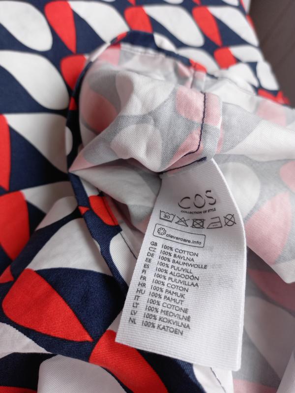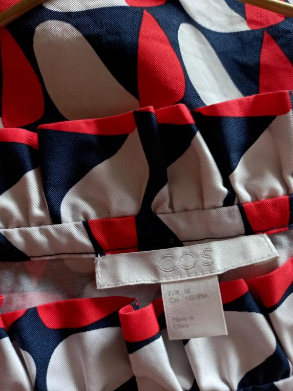 Геометрический принт с сочетанием темно-синего, белого и красного цветов