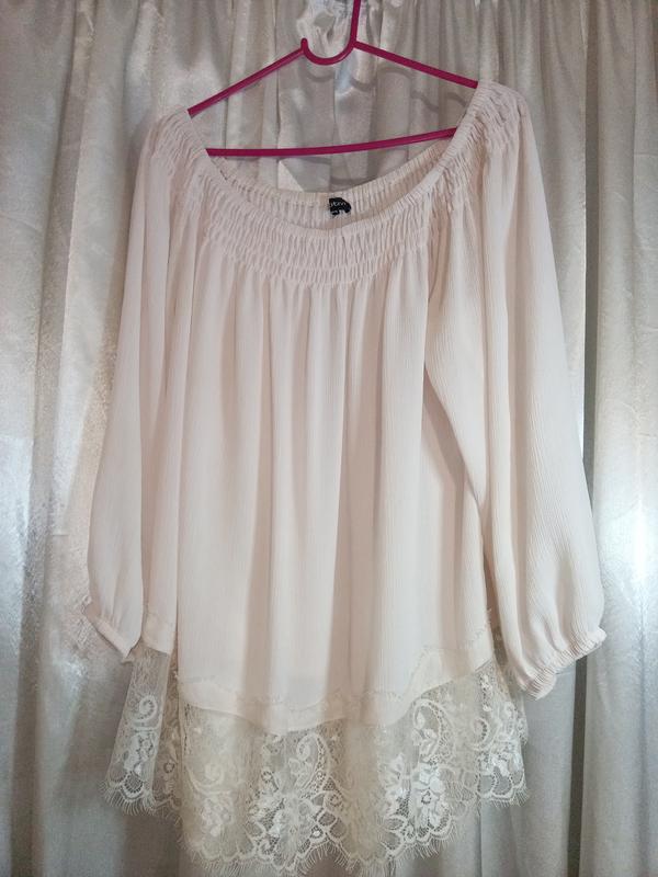 Очень нежная блуза женская с кружевом. светло-розового цвета, подойдет для праздничного события, также офисный вариант, если такой стиль разрешается). На фигуре сидит очень красиво!! размер не указан, но подойдет на 42-46, стиль оверсайс.