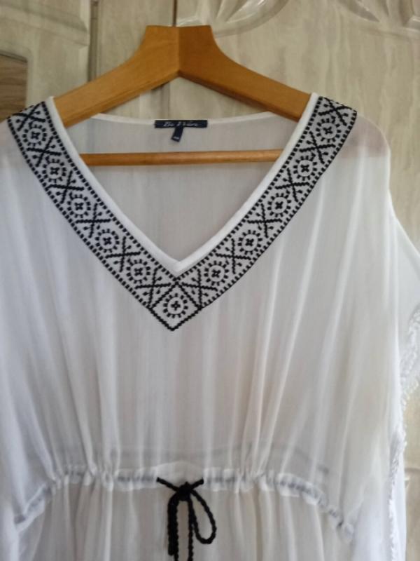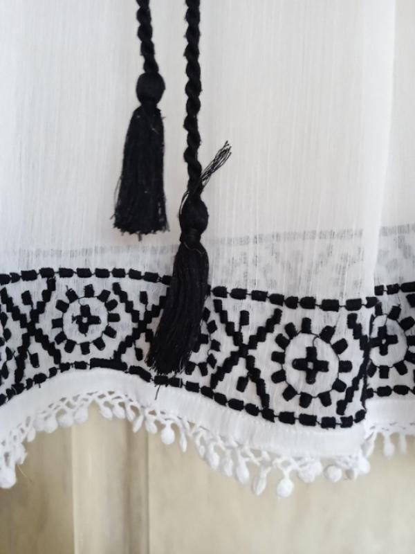 Стан новой вещи.Белая, воздушная вышитая черным - актуальна в наше время.То талии шнурочек регулирует с милыми кисточками.
