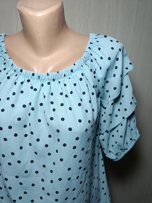 Ярусная трикотажная блуза голубого цвета в черный горох 46-48 размера