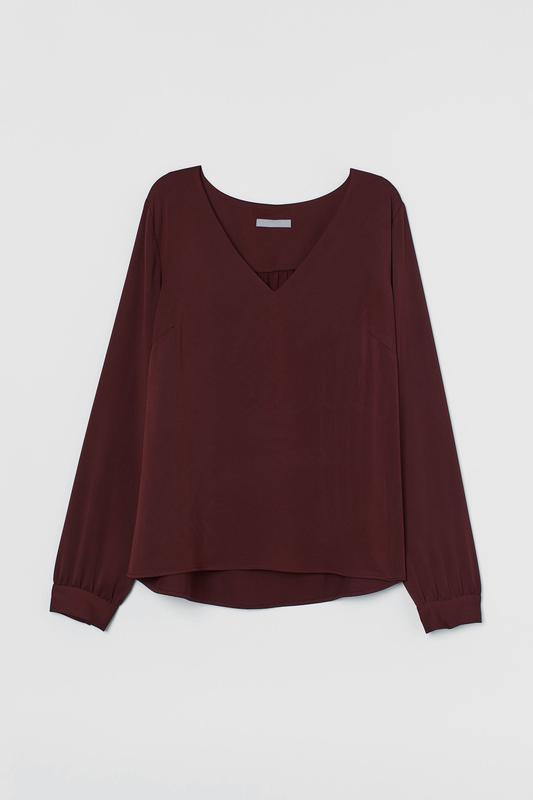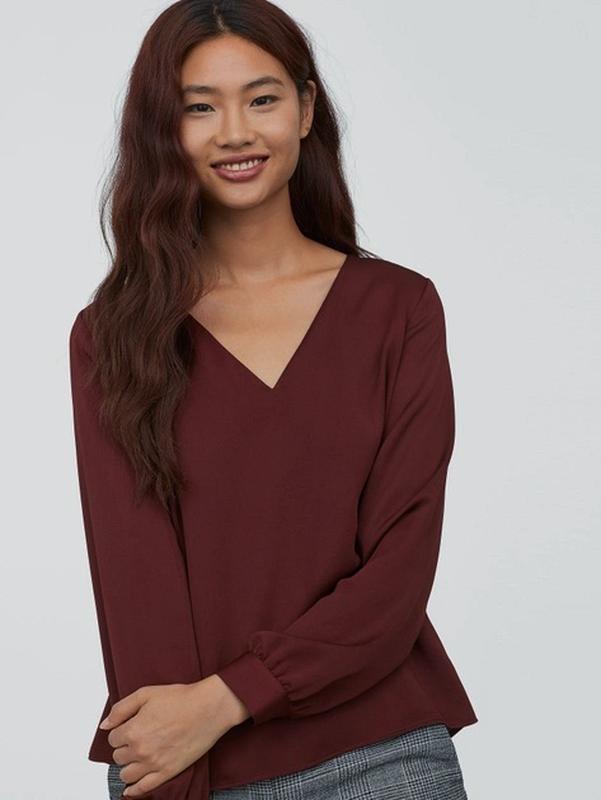 Стильная блузка из легкой креповой ткани в темно-бургундском цвете от бренда H&M.