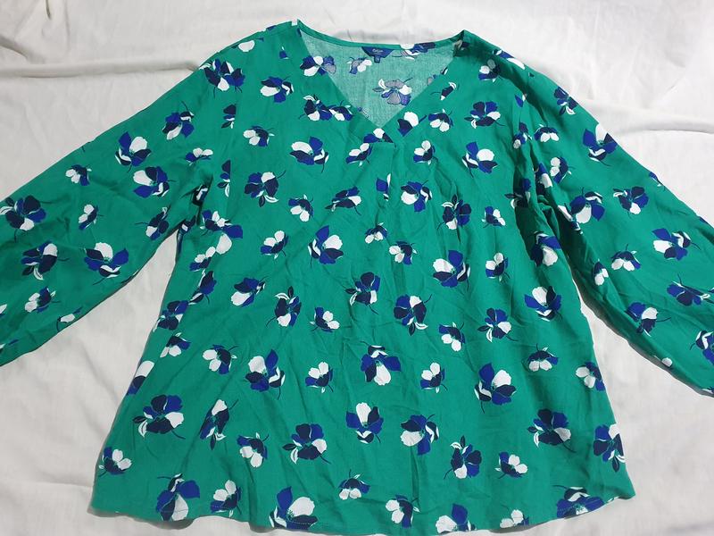 Размер 16длина 66пог 62Блузка из мягкой, драпирующейся и очень приятной ткани.V-образный вырез с красивой складкойИзогнутый подолРукава длиной ¾ с эластичными манжетами.ВискозаСмотрите другие товары, там много интересного ❤️