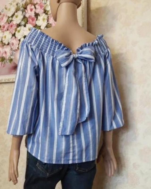 ❤ красивая блузка хб в полоску, на спине бант, одеваться на плечи (резинка), рукав на резиночке