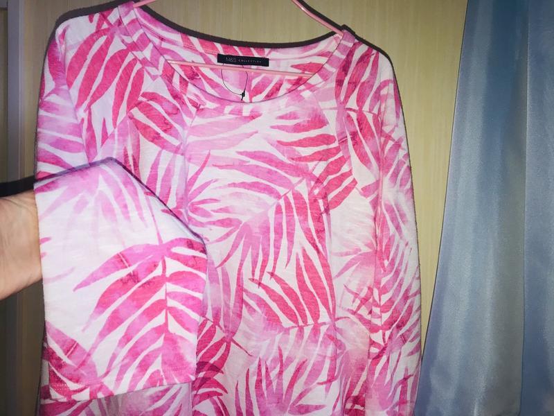 Новая брендовая качественная красивая трикотажная блуза. Размер евр 46. Замер: ПОГ-58, ПОС-61, рукава-3\4, длина-62, 67. Стрейч. Состав: 80% полиэстер, 10% вискоза, 10% лен. Выглядит нежно. Покупайте.