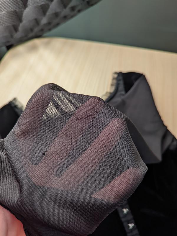 на рукавах есть небольшие затяжки, в носке не видно