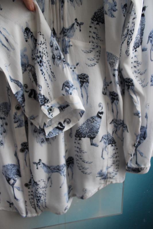 Нежная блуза с принтом "животные и птицы"Размер заявлен L (наш 46/48), будет также на 50-йПОГ 57ПОТ 55Бицепс 19Длина рукава 62Длина изделия 82
