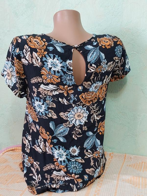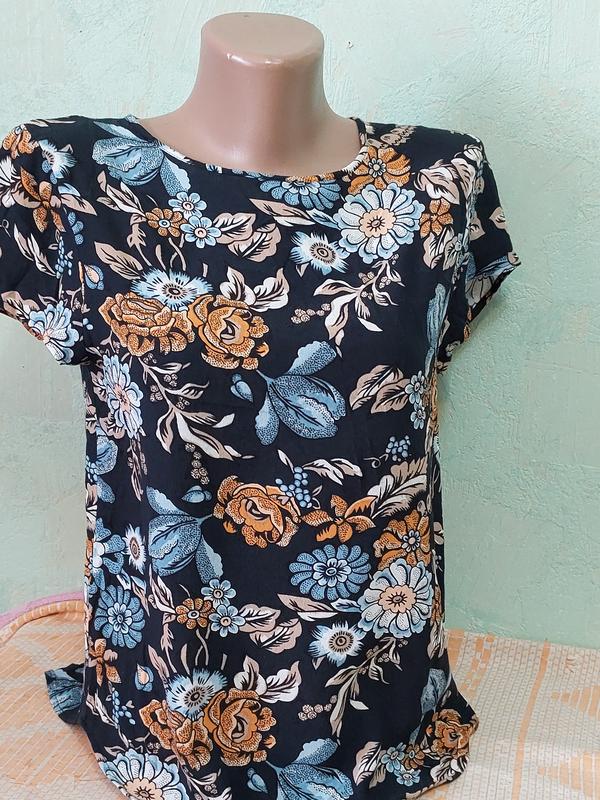 блуза футболка в цветочный принт, в идеальном состоянии, длина по спинке 57см, пог 43см, ширина плеч 36смсостав вискозаразмер указан EUR 34