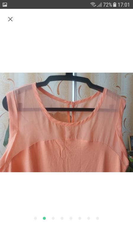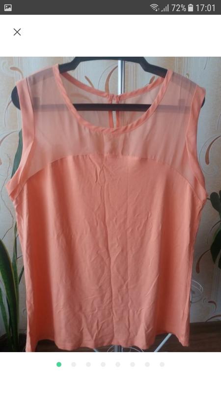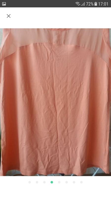 Блуза яркой расцветки кораллового цвета из комбинации материалов.Район плеч -- из легкого шифона, ниже 95% вискозы и 5% эластана.Ззади есть застежка на одну пуговицу.с навесной петлей. Красивая отделка рукавов.Замеры:Пог 50 см,Пот 48 см,Поб. 52 см,Длина вещи 64 см Стан очень хорош. дефектов нет.Яркая летняя штучка.
