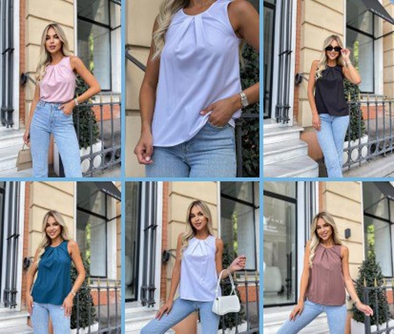 Летняя блузка без рукавов имеет прямой ровный крой, благодаря чему красиво садится по фигуре и не утруждает образ. Неглубокий круглый вырез горловины с драпировкой является главным украшением модели. Блузу можно носить на любой вкус – на выпуск, либо заправляя под пояс. Она хорошо сочетается с юбками, шортами, брюками и джинсами.