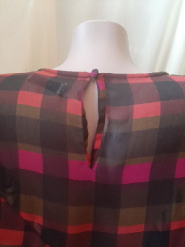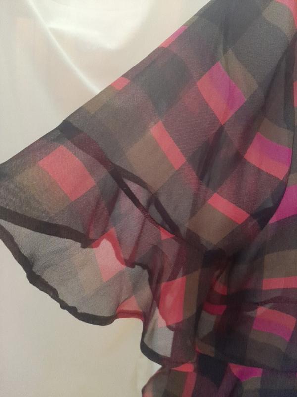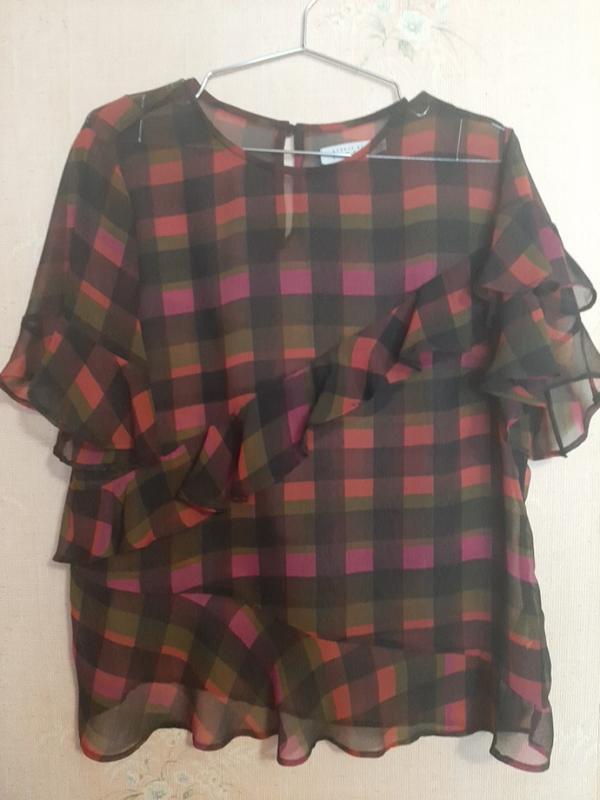 Блуза в яркую клетку с рюшиками, мягко под маечку, или на еффектный бюстик носить, состояние новой вещи, размер UK 16 : ПОГ - 57, ПОТ - 58, рукав - 24, длина - 67см