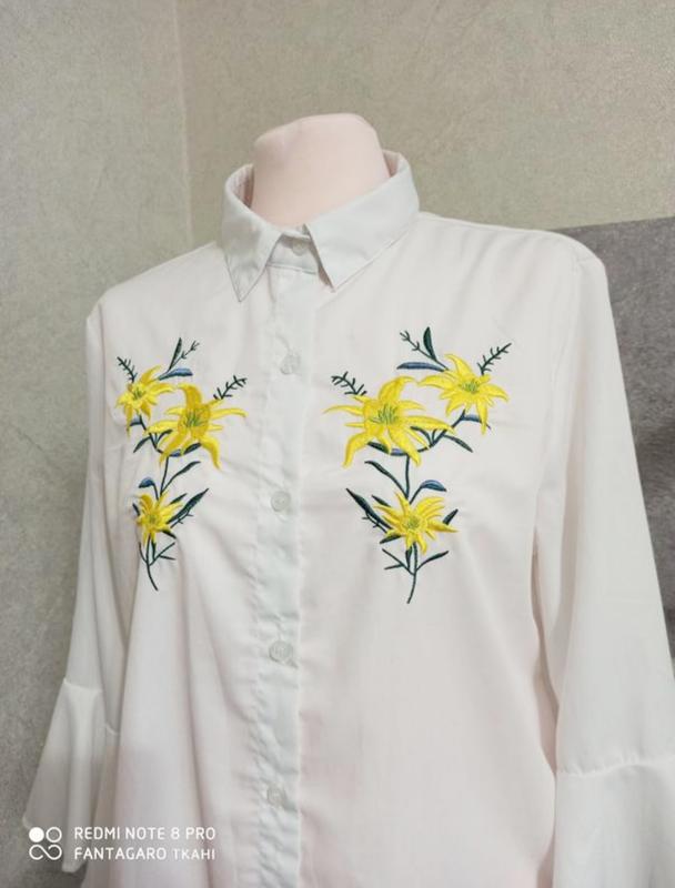 Блуза хлопковая с вышивкой.Отличное состояние новой вещи.Вышивка машинная в приятных тонах.Бельенка.Грудь пол обхвата 53 см.