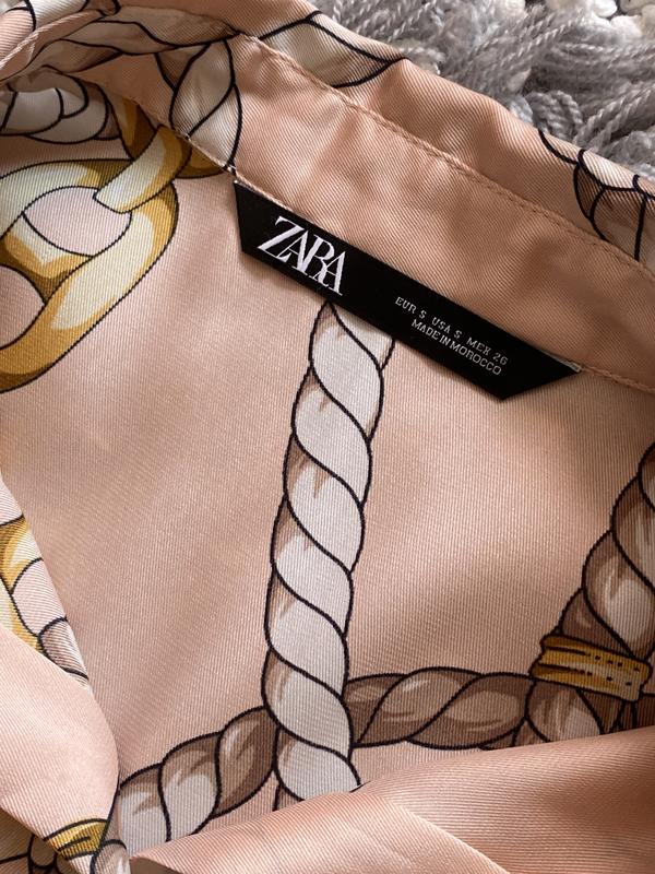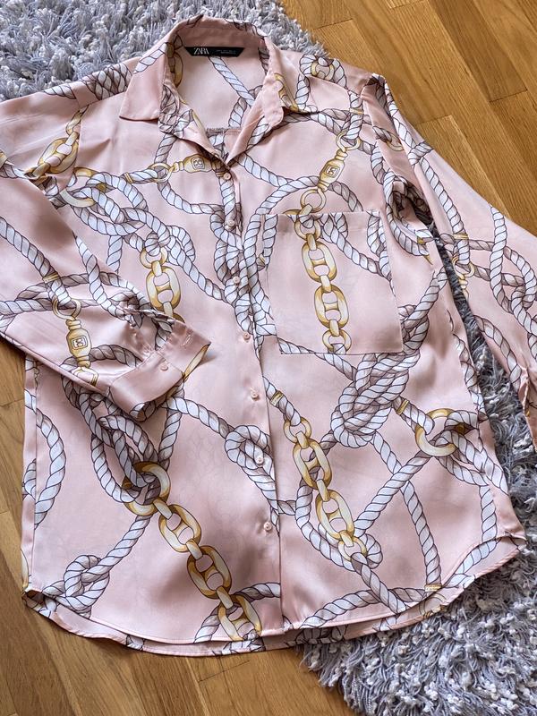 Блуза оверсайз ZARA рубашечного кроя с карманом на груди. Состояние хорошее, есть пару затяжек на ткани, за счет принта в глаза не бросается, практически не видно. Размер С, но за счет фасона подойдет и на М и на небольшую Л. Замеры: плечи 44см,плечевой шов спущен, подмышки 50-51, длина перед-зад 80см, по бокам 70см, рукав 57см.