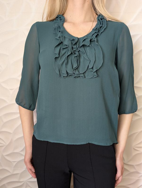 Блуза шовкова madeleine шовк зелена з воланами шелк шелковая блузка топ