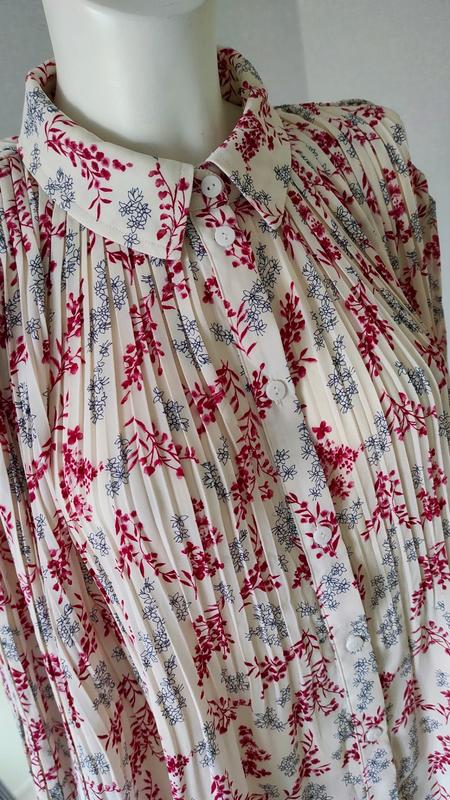 очень красивая женская плиссированная блуза размер производителя 22 длина по спинке 72 см грудь 130 см низ до 140 см рукав от горловины 72 см плечи 46 см пройма рукава полуобхват 25 см Полиэстер 100%