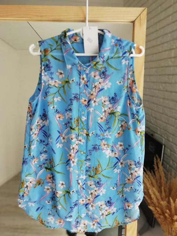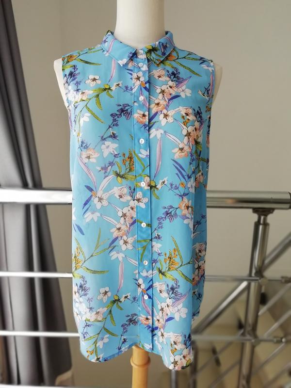 Хлопковая блуза в цветочный принт бирюзовая m&co, индия 46-48