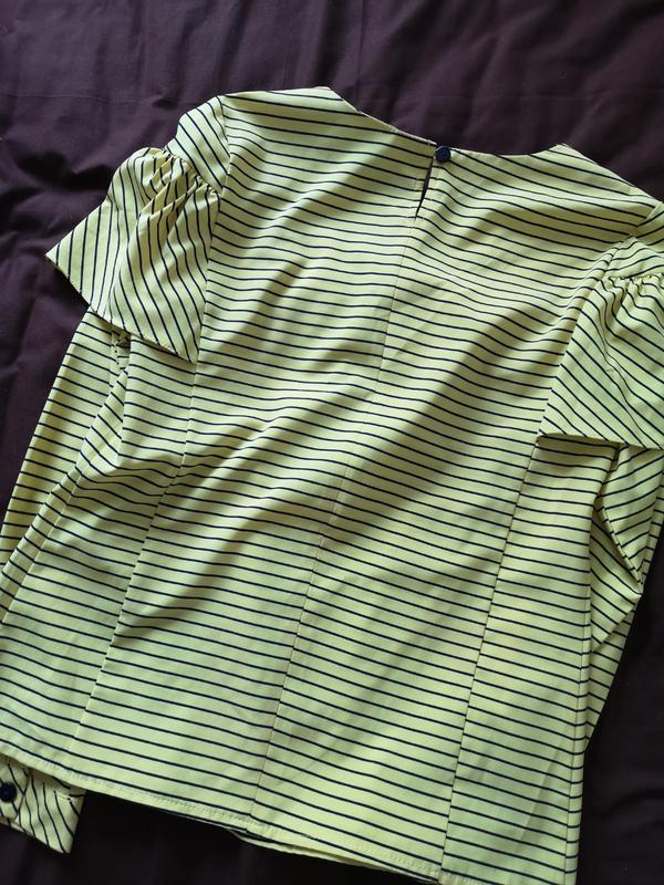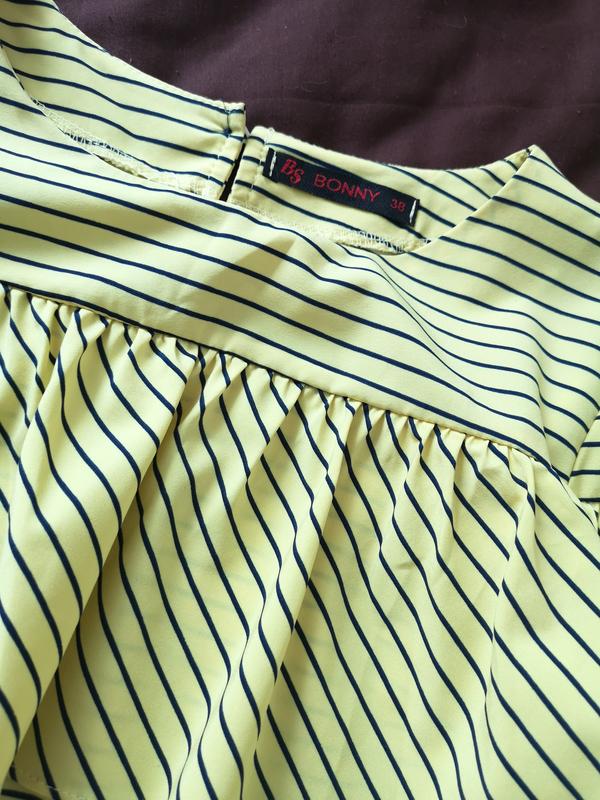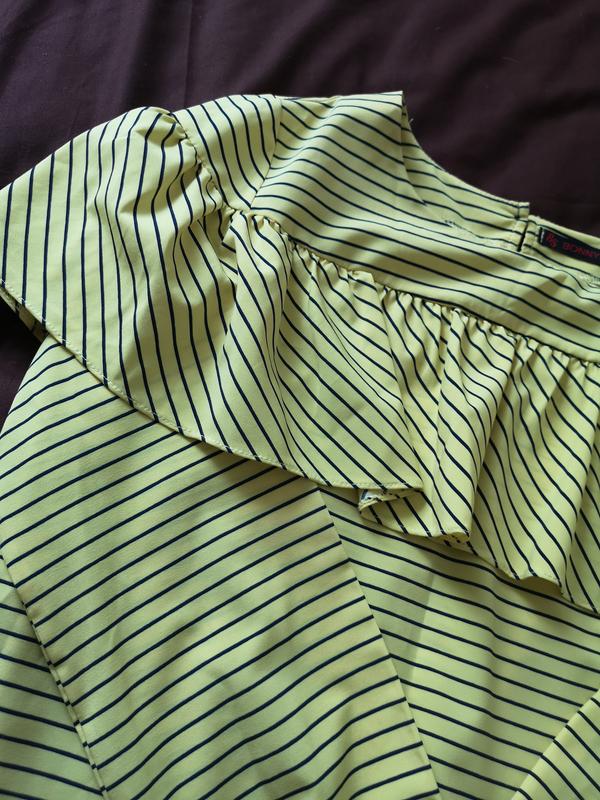 Якрая блуза в контрастную полоску. Лёгкий, приятный к телу материал. Есть волан в районе груди. Отлично подойдёт на размеры S-M