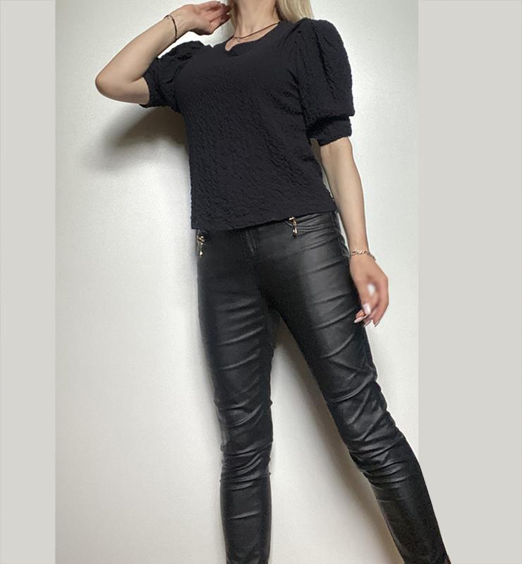 Эластичная, очень хорошо тянется, мягкая, приятная к телу.
