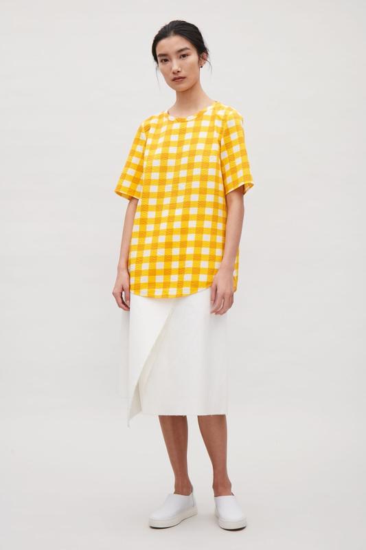 Блуза фактурная рукав фонарик с баской рюшей в клетку крапинку primark из жатой ткани