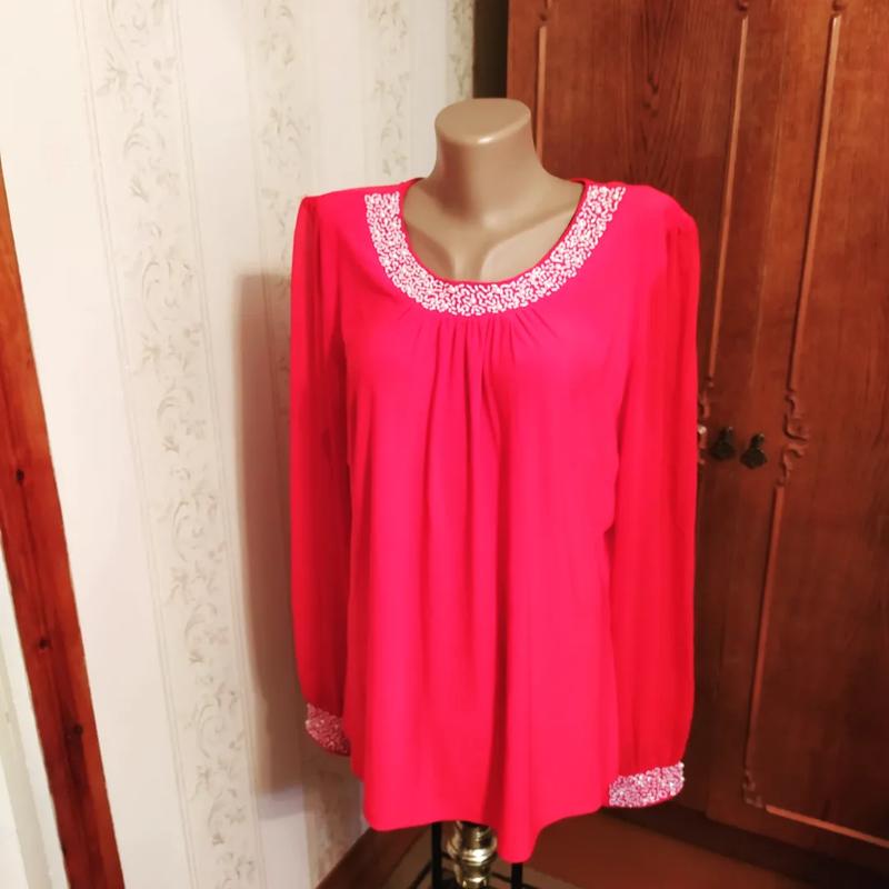 Нарядная блуза,еврр.20,горловина и манжет рукава расшит дорогим бисером и жемчугом перламутр белый.Ог120+++ОБ 130+++ДЛ.65 РУК.66,БИЦ.по 20,Пл.42