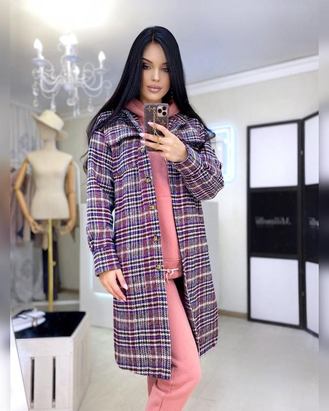 Жіноча подовжена рубашка у клітинку кардиган сорочка